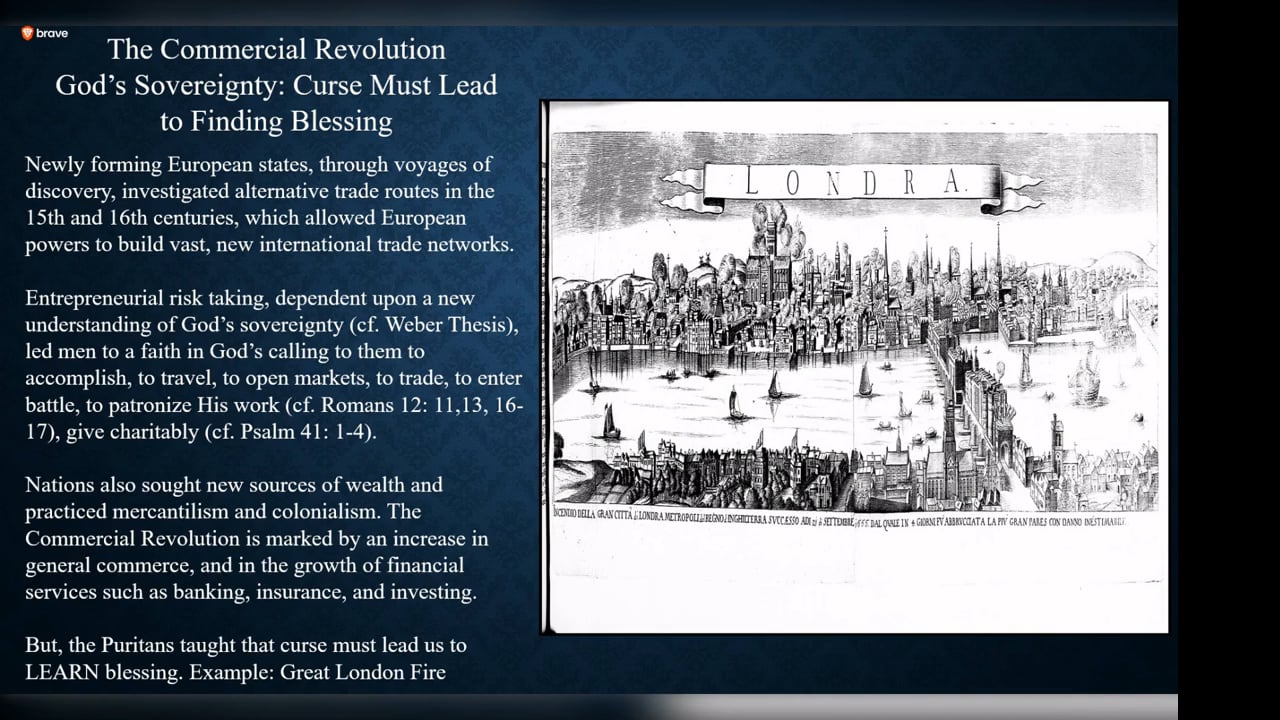 Explore the Puritans’ theology of finding blessings in adversity and the aftermath of the Great London Fire. Discover how this disaster spurred trade, banking, and insurance industries while highlighting the challenges faced by the displaced. The narrative also covers the Puritans’ struggle for freedom, the evolution of the House of Commons, and the significance of economic freedom, reflecting on their lasting impact on governance and individual rights.